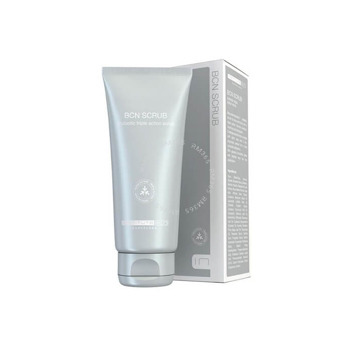 BCN Scrub est un gommage prébiotique pour le visage et le corps à triple action (physique, chimique et biologique) qui combine des microcristaux d’alumine avec de l’acide lactique et un extrait bio-enzymatique pour une exfoliation plus complète. BCN Scrub améliore l’aspect général de la peau en unifiant le teint, en améliorant la clarté et en augmentant l’hydratation sans compromettre la fonction de barrière.